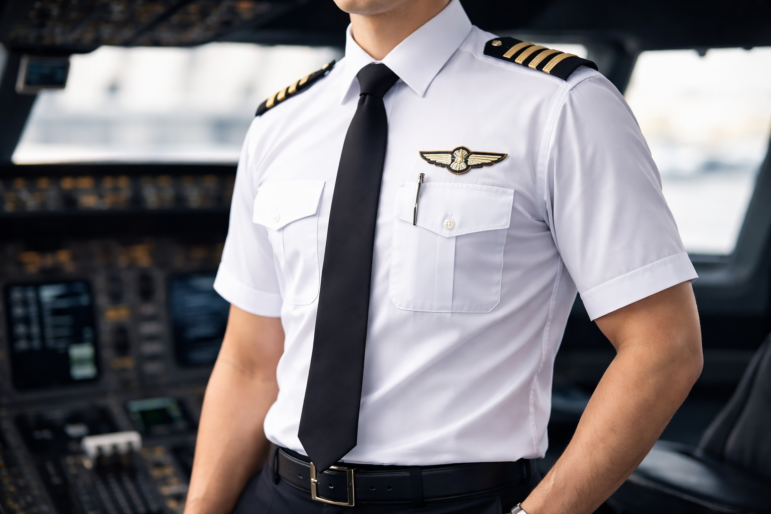 jackets, suits, shirts, trousers, dresses, skirts, neck ties, scarves, belts, and shoes designed to give airline and aviation staff a sharp, professional, and polished appearance.